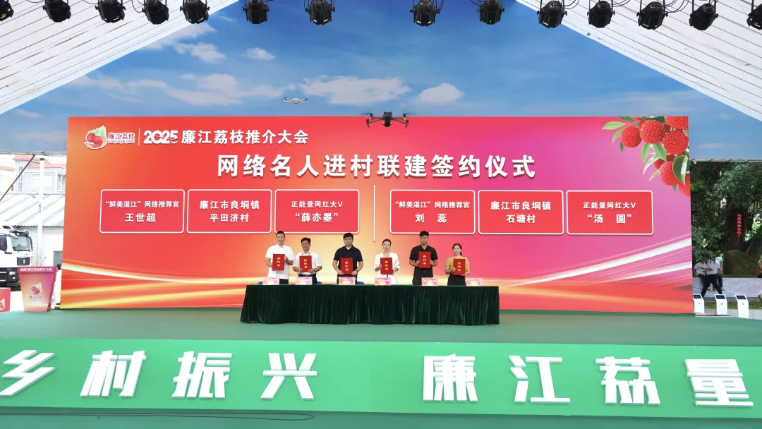值得一提的是,活动现场举办了网络名人进村联建签约仪式,省委网信办、湛江市委网信办组织正能量顶流网红大V、“鲜美湛江”网络推荐官与廉江市良垌镇平田济村、石塘村进行三方合作签约,借助电商平台为当地特色农产品搭建线上销售新渠道,助力“百千万工程”。